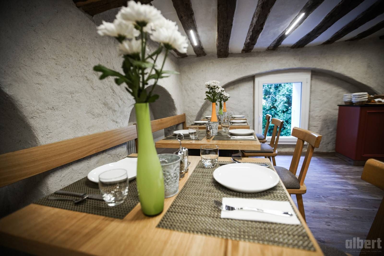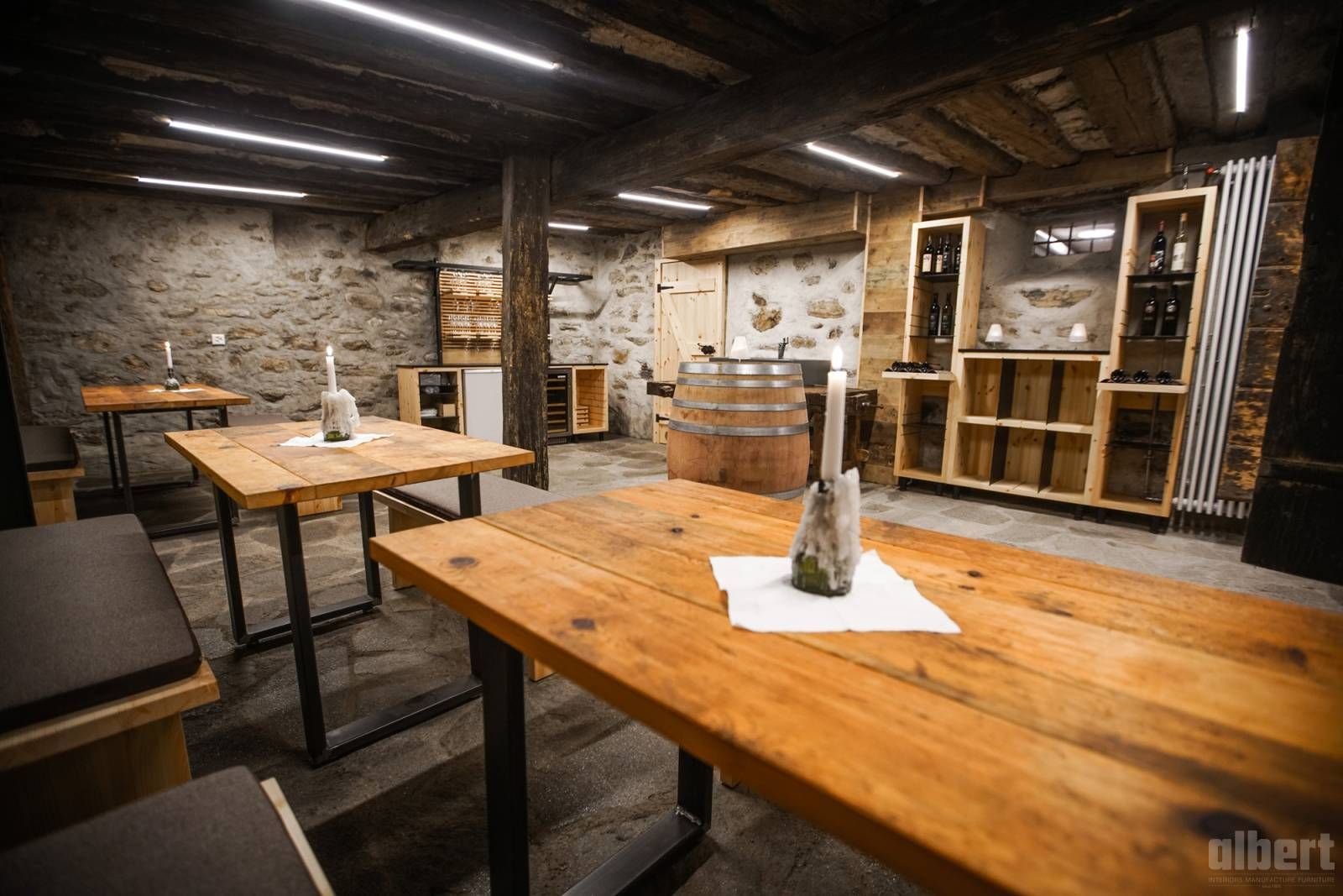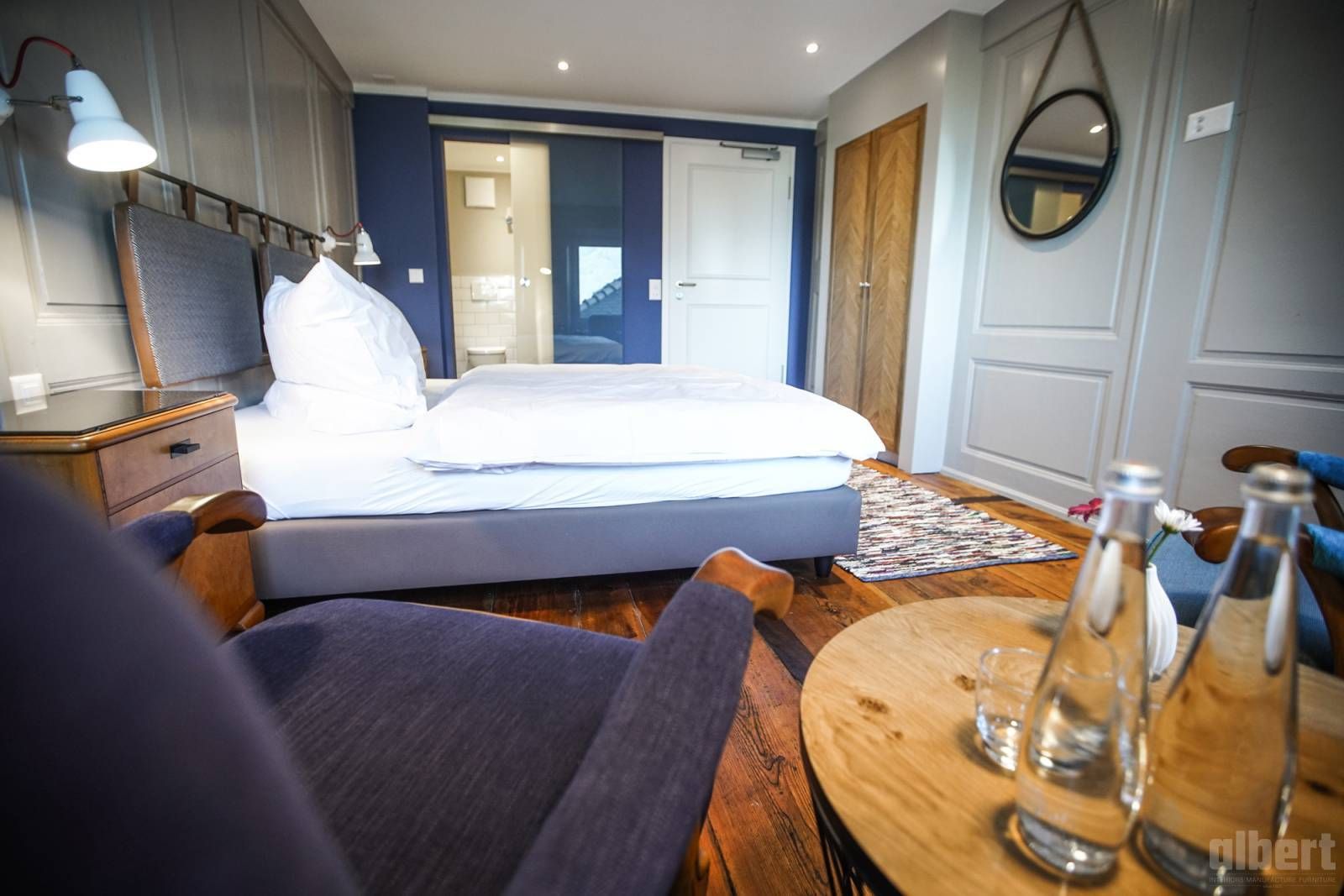 albert gestaltete die acht Zimmer, den Weinkeller und den Frühstücksraum und schuf dabei Räume, die dem besonderen Charakter dieses Hauses gerecht werden. In den Zimmern entschied albert über Materialien und Möblierung so, dass antiker Chic und moderner Komfort eine natürliche Einheit bilden, jedes Zimmer mit eigenem Gesicht, die meisten mit Blick ins wilde Rhonetal. Der Weinkeller wurde als urchiger Rückzugsort konzipiert, in dem die Weine der Varner Winzer in der richtigen Atmosphäre zur Geltung kommen. Und der Frühstücksraum so gestaltet, dass der Morgen mit regionalen Spezialitäten und dem Bewusstsein beginnt, an einem ganz besonderen Ort zu sein.