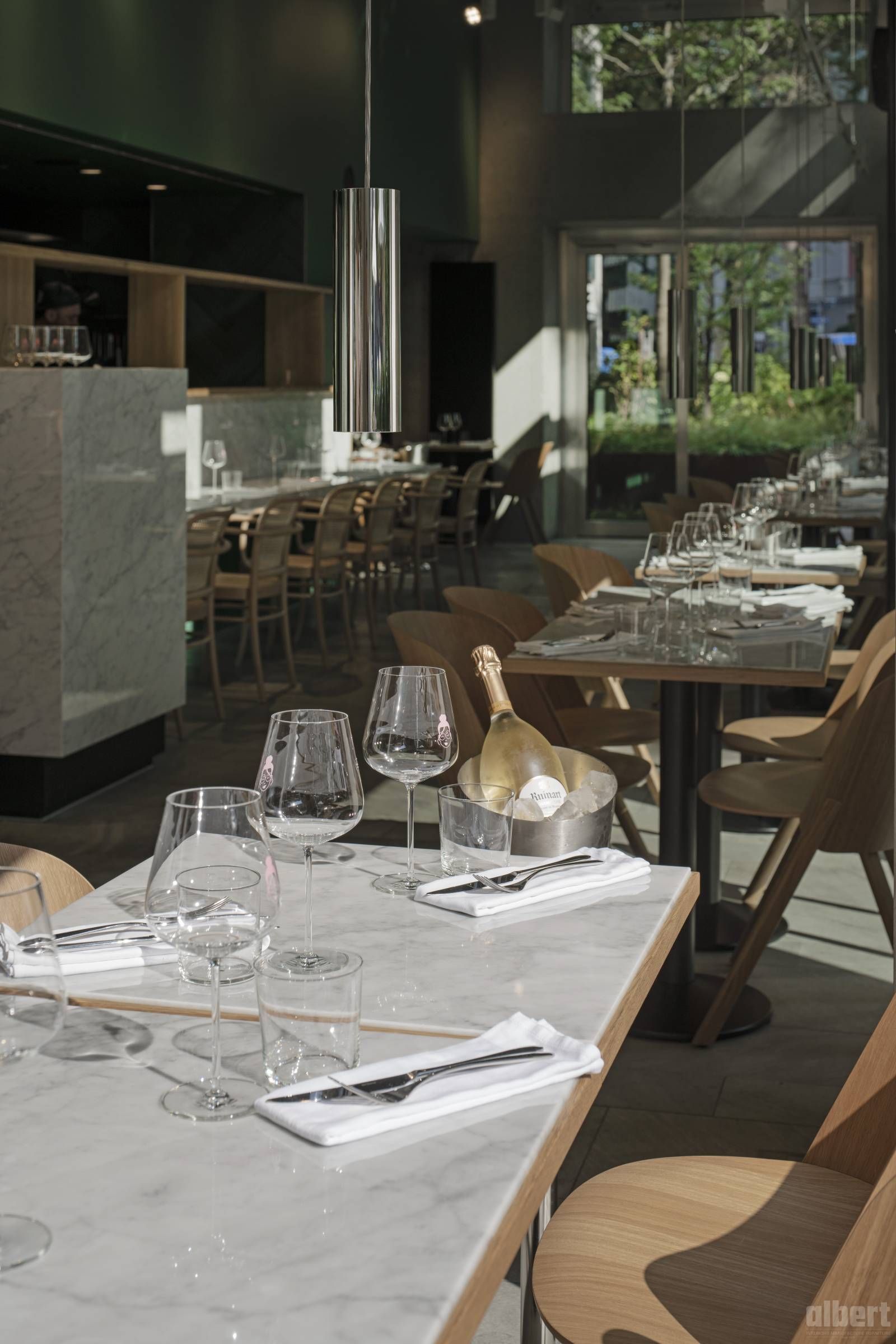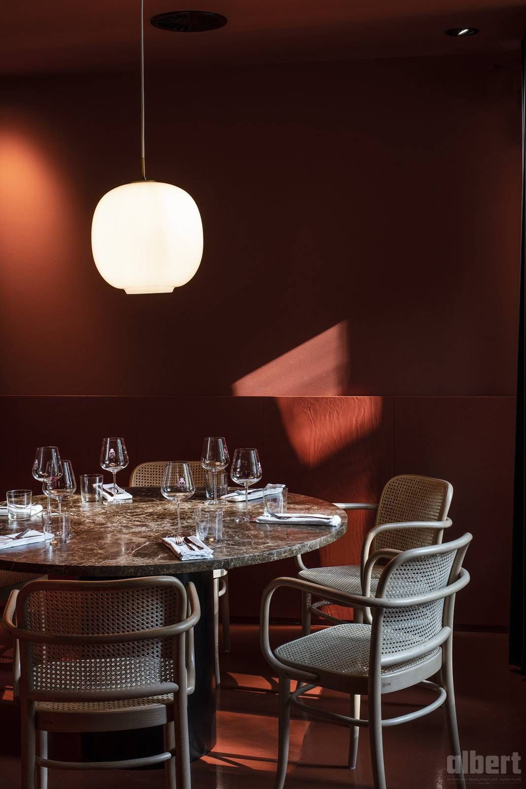 albert interior verantwortete die Kompletteinrichtung und bewies, was es bedeutet, einen solchen Anspruch konsequent in die Fläche zu bringen: ein Interieur, das Haltung zeigt, ohne laut zu sein, und das den Charakter dieses außergewöhnlichen Gastro-Kosmos auf den Punkt bringt.
